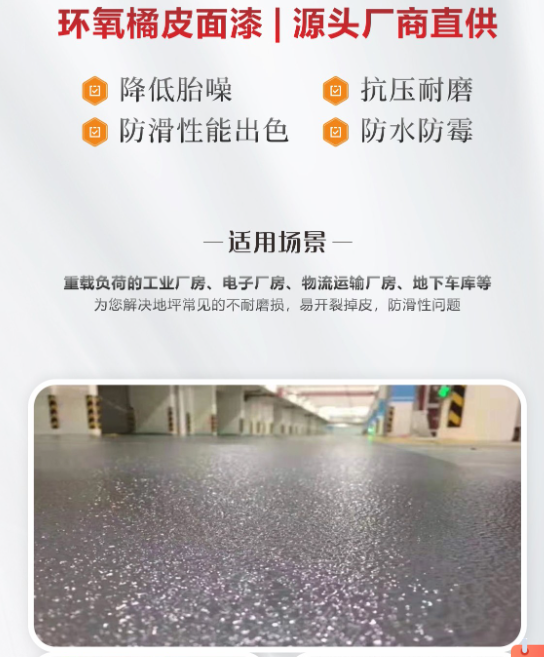 環(huán)氧樹脂與固化劑形成的致密涂層,可承受重型機(jī)械碾壓及高頻摩擦,適用于工業(yè)車間、倉(cāng)庫(kù)等高強(qiáng)度使用場(chǎng)景。